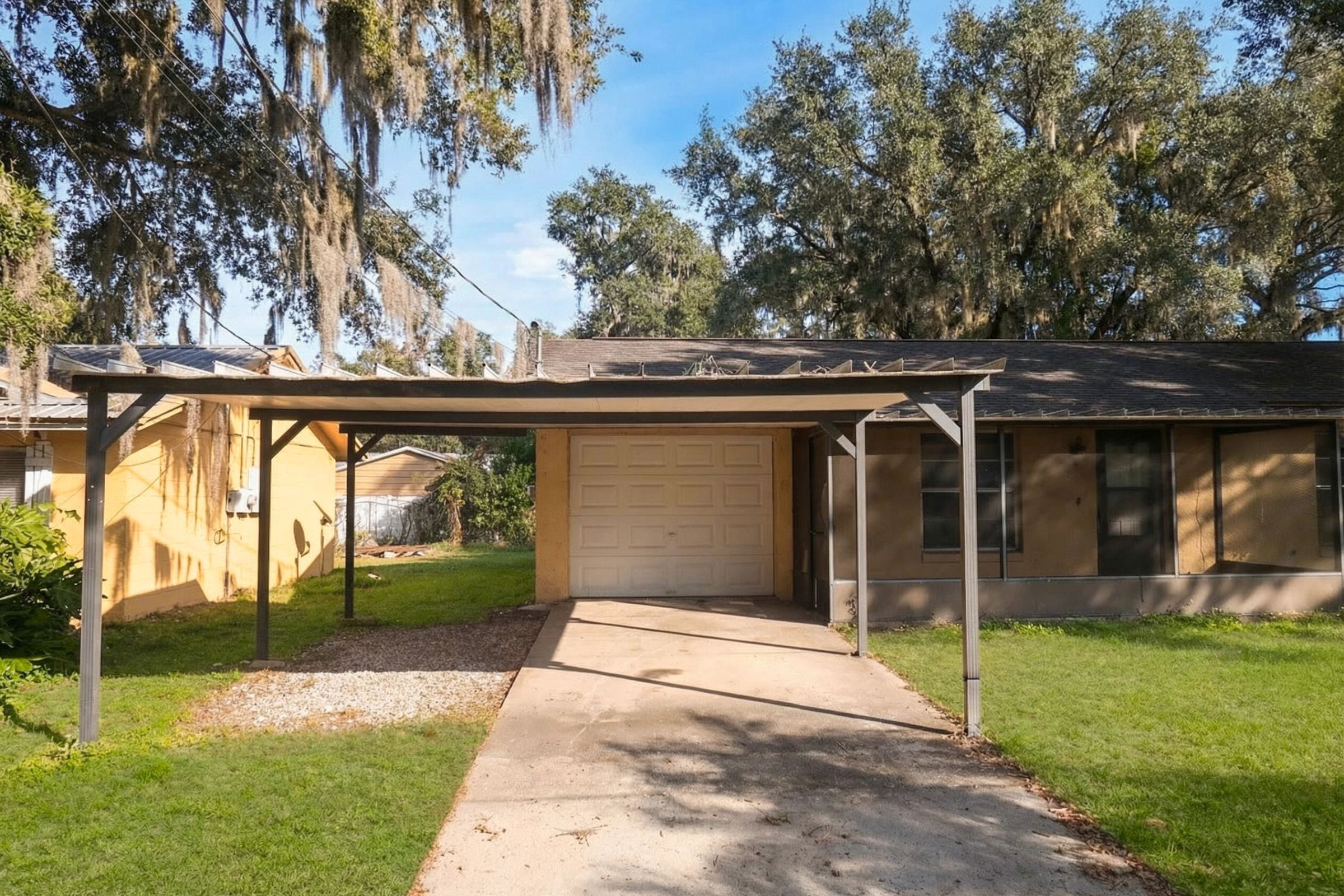 Welcome to 14670 Douglas Dr in Dade City! This 3-bedroom, 1.5 bathroom home offers 1,040 sqft of living space with a functional layout and lots of potential. The primary bedroom features a walk-in closet and an attached half-bath for added convenience. Additional highlights include a spacious living room and kitchen, attached one-car garage, covered carport, and a screened-in front porch. Being sold as-is, the property needs cosmetic updates and is well suited for investors or buyers looking to design their dream home. Schedule your showing today!