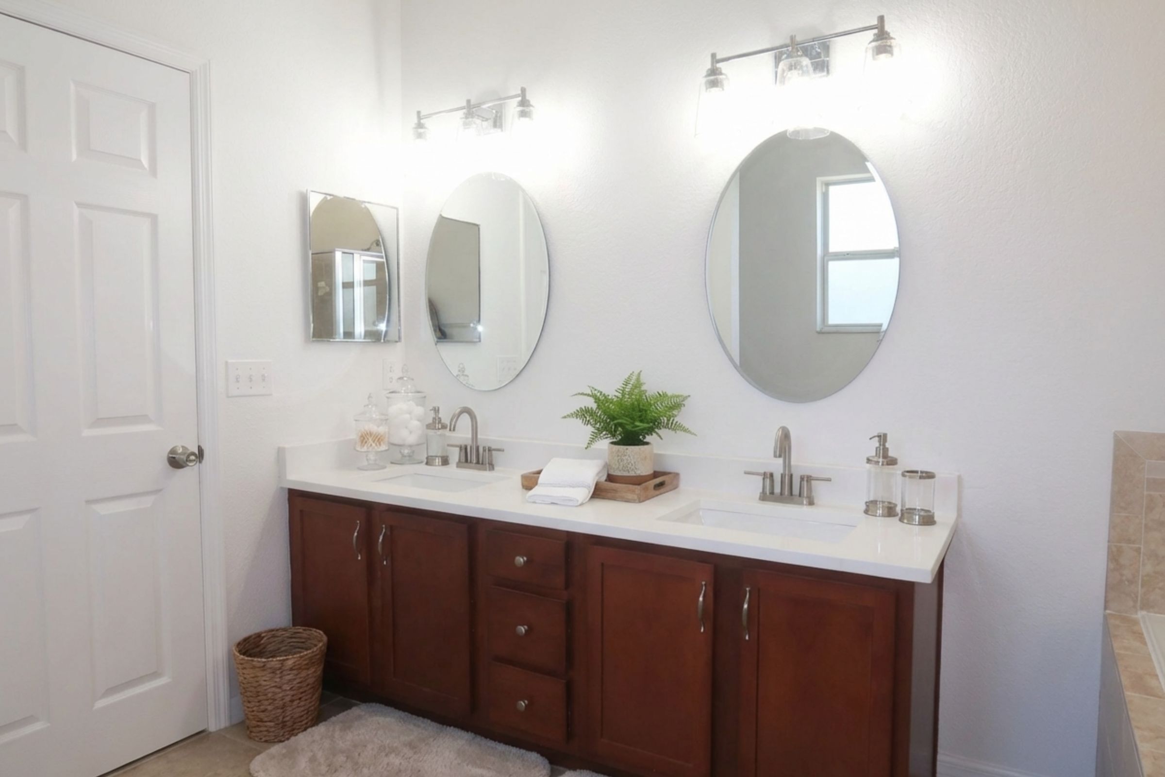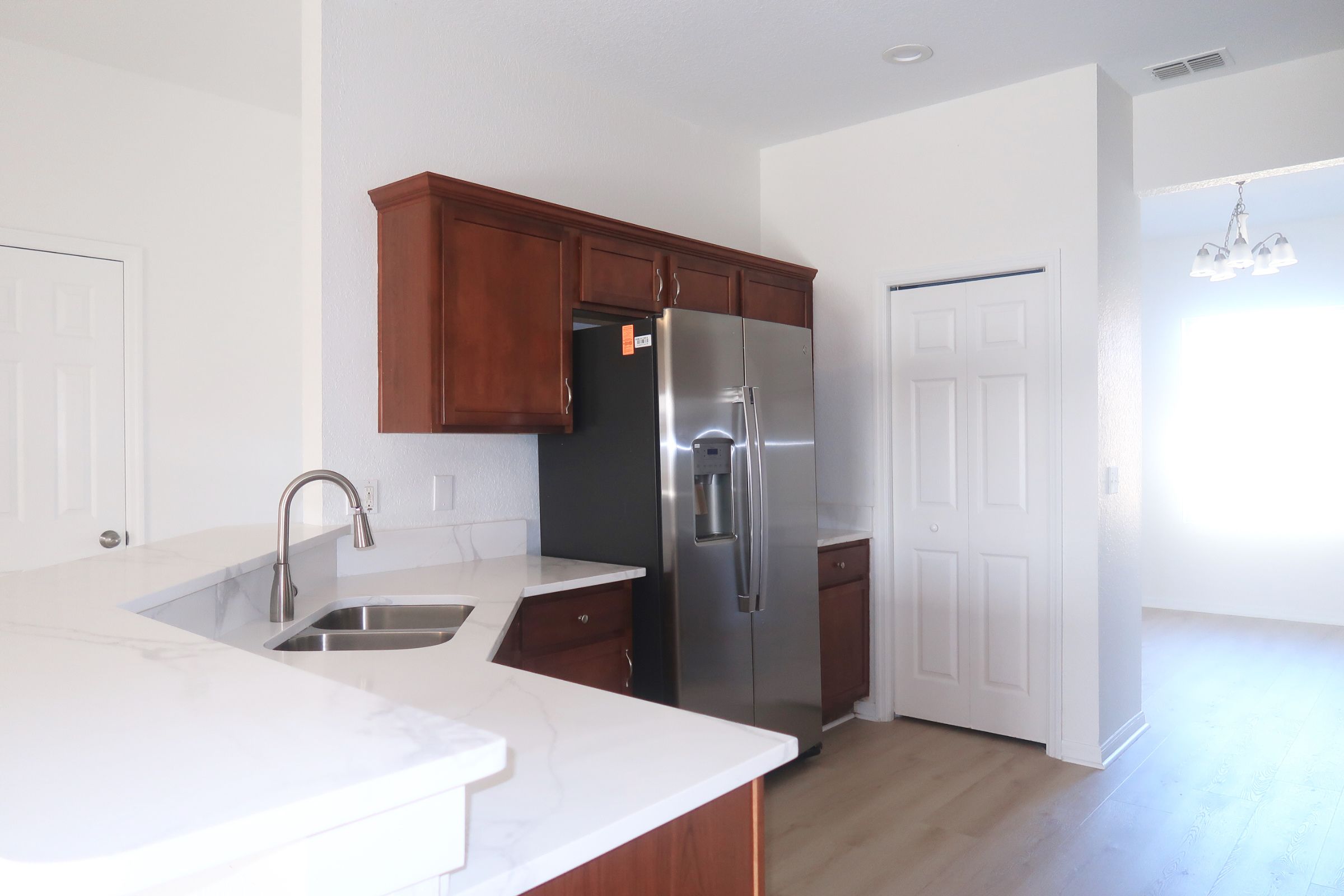 Welcome to 3370 Winchester Estates Cir in Lakeland! This beautifully updated 4-bedroom, 3-bathroom home offers over 2,000 square feet of comfortable living space. Recent updates include fresh interior and exterior paint, new vinyl flooring, and new light fixtures throughout. The home features two separate living areas - one at the front and one at the back - providing flexibility for entertaining and relaxing. A dedicated dining room sits just off the kitchen. The master bedroom connects to the screened-in lanai. Other features include a walk-in closet and an en suite bathroom with double vanities, a soaker tub, and a standing shower. The additional three bedrooms provide ample closet space and a dedicated laundry room and two-car garage add everyday convenience. Step outside to enjoy a large backyard overlooking agricultural land - ideal for those seeking privacy, open views, and a quiet setting. Newly installed roof. This home is move-in ready - schedule your showing today!