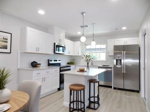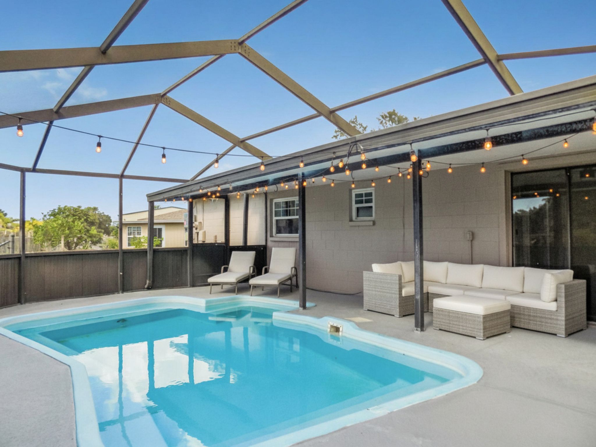 Welcome to 9970 62nd St N in Pinellas Park! This beautifully remodeled 2-bedroom, 1-bathroom home is tucked away on a quiet cul-de-sac and has modern updates throughout. Inside, you'll find a brand-new kitchen and bathroom, new flooring, fresh paint, and updated lighting. The kitchen comes fully equipped with new stainless steel appliances. One bedroom features dual closets and the second bedroom opens directly to the screened-in pool through sliding glass doors - perfect for enjoying indoor-outdoor living. Outside, you'll find a fenced-in backyard with an in-ground pool, along with a front screened-in lanai. Additional features include a one-car garage and energy-efficient solar panels. Make this move-in ready home yours - schedule your showing today!